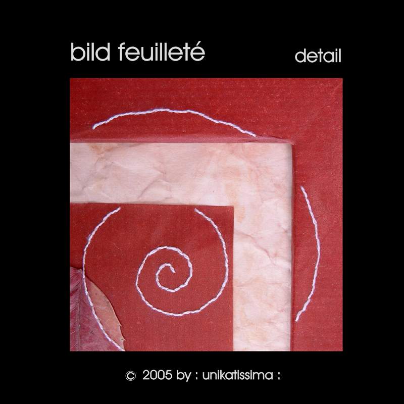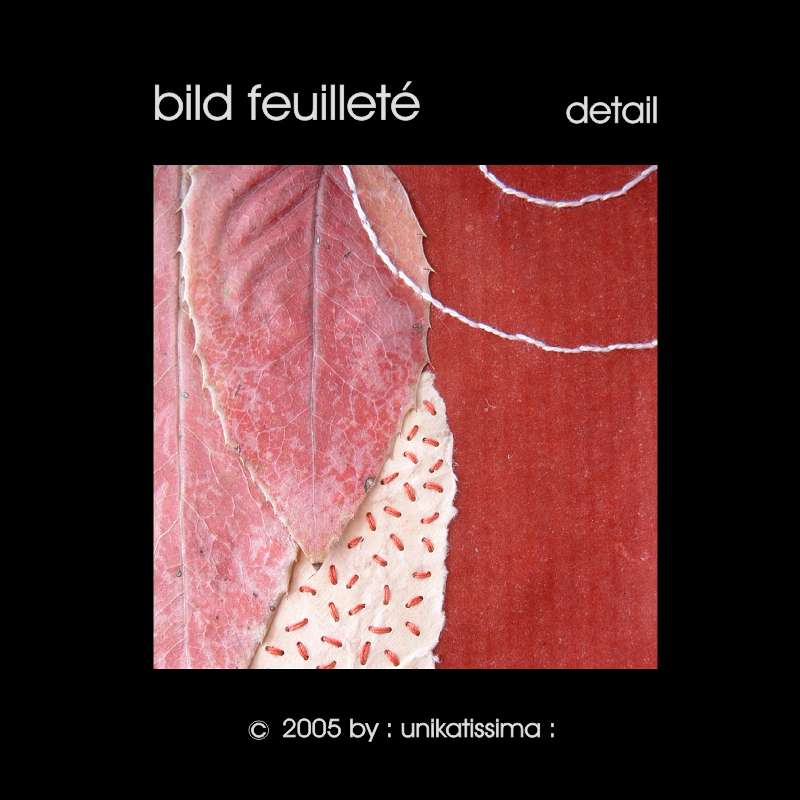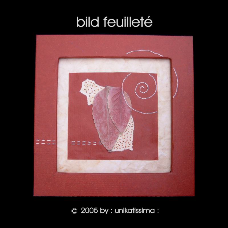 Feuilleté ist eine handbestickte Collage mit echten Blättern.